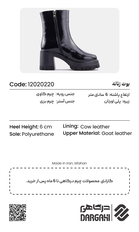 کفش بوت زنانه چرم درگاهی با طراحی شیک و کیفیت ممتاز، انتخابی ایدهآل برای استفاده روزمره و استایلهای مدرن است.زیرهی پلییورتان با سبکی، انعطافپذیری و دوام بالا، هر قدم را نرم و راحت کرده و با خاصیت ارتجاعی خود فشار پا را کاهش میدهد. طراحی ضدلغزش نیز ایمنی و اطمینان حرکت را در مسیرهای مختلف تضمین میکند.رویهی بوت از چرم طبیعی ورنی ساخته شده است؛ چرمی براق، شیک و چشمگیر که جلوهای مدرن و لوکس به استایل میدهد و همیشه مرتب به نظر میرسد.